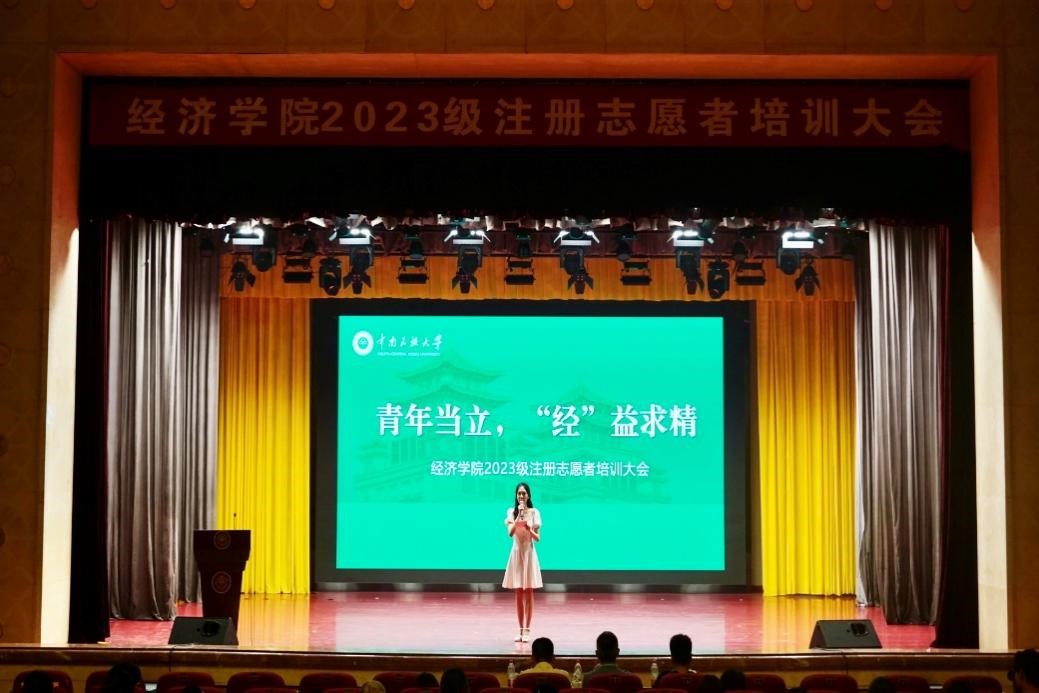 经济学院青协主席、团委志工部部长杨子洁致欢迎词,介绍了经济学院青协的发展历程,主要工作、奖项荣誉和后续工作规划,鼓励同学们积极参与志愿服务活动,践行志愿精神。