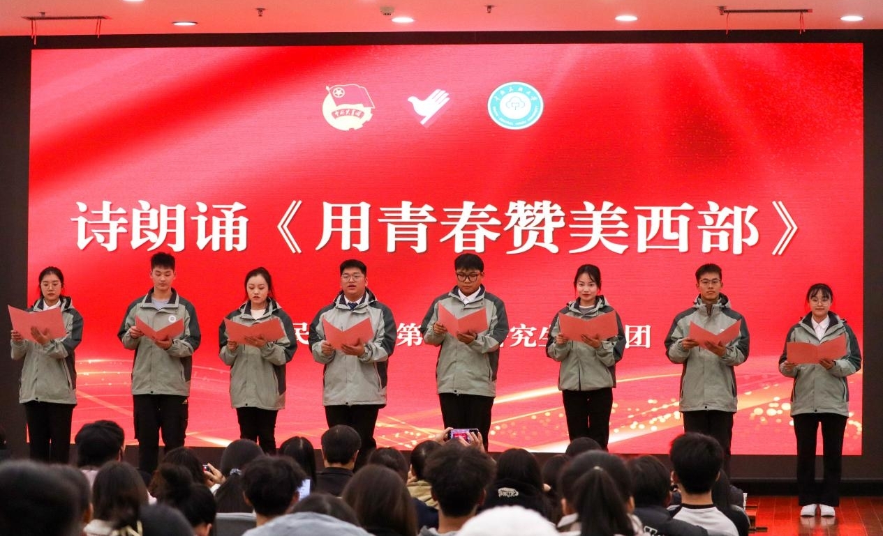 诸侯快讯官网第26届研究生支教团集体朗诵原创诗歌《用青春赞美西部》。 何涵摄